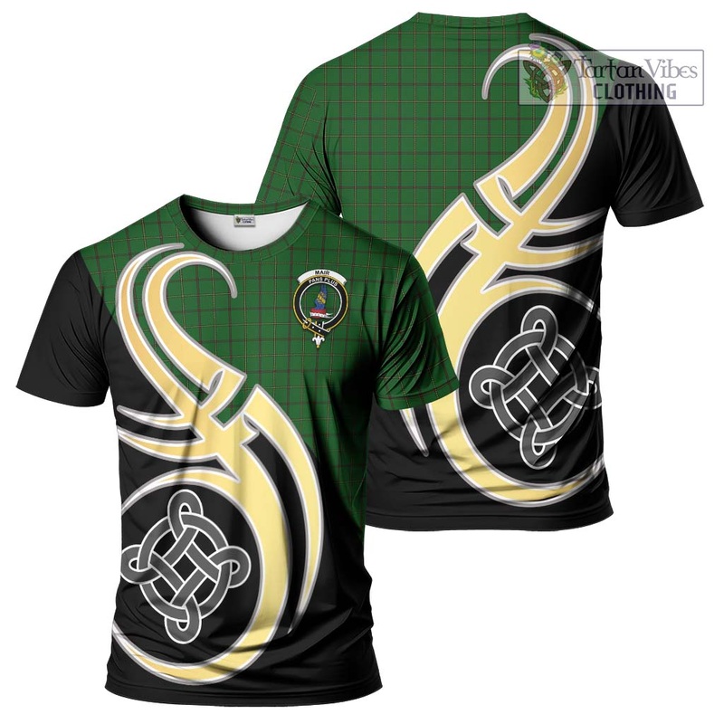 Mar Tribe Tartan T-Shirt with Family Crest and Celtic Symbol Style