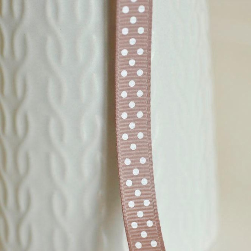Marrin taupe polka grosgrain ribbon, jewelry making, white polka dot ribbon, wedding ribbon, width 1cm, length 5 meters-G1295