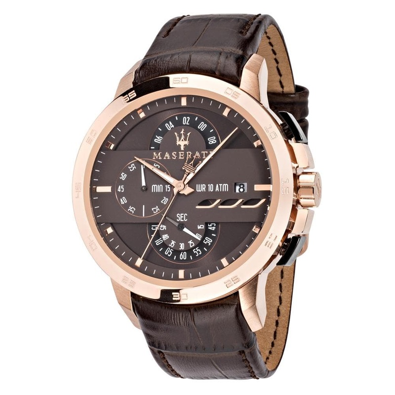 Tell the time with acute precision when you strap this Maserati creation on your wrist. Designed with a polished bezel with a sleek leather strap, this time-teller is laced with timeless appeal. Practical in function and opulent in design, this watch makes