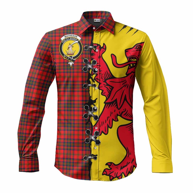 Matheson Tartan Family Crest Long Sleeve Button Shirts Lion Rampant Honor