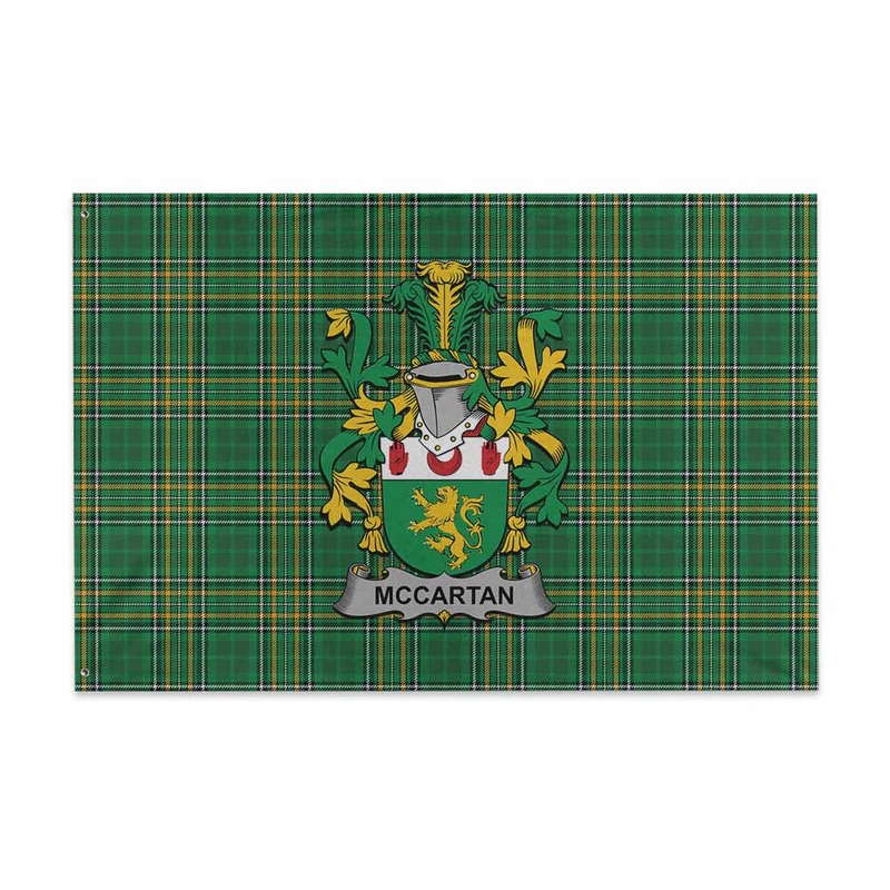 McCartan Irish Clan Tartan House Flag with Coat of Arms