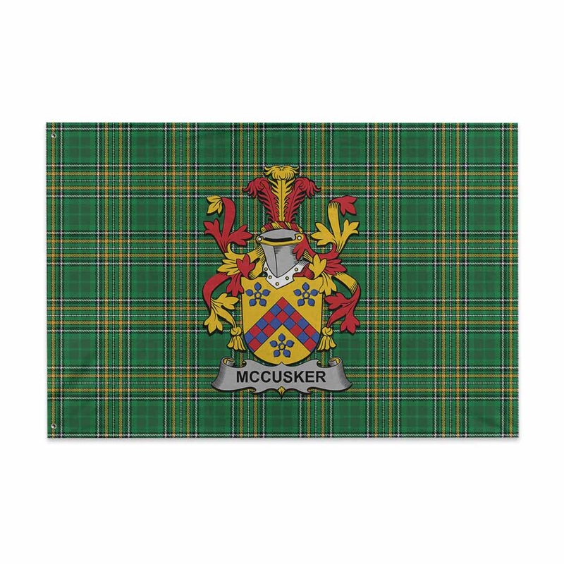 McCusker Irish Clan Tartan House Flag with Coat of Arms