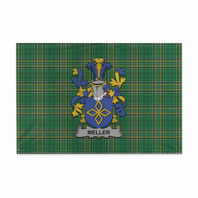 Meller Irish Clan Tartan House Flag with Coat of Arms