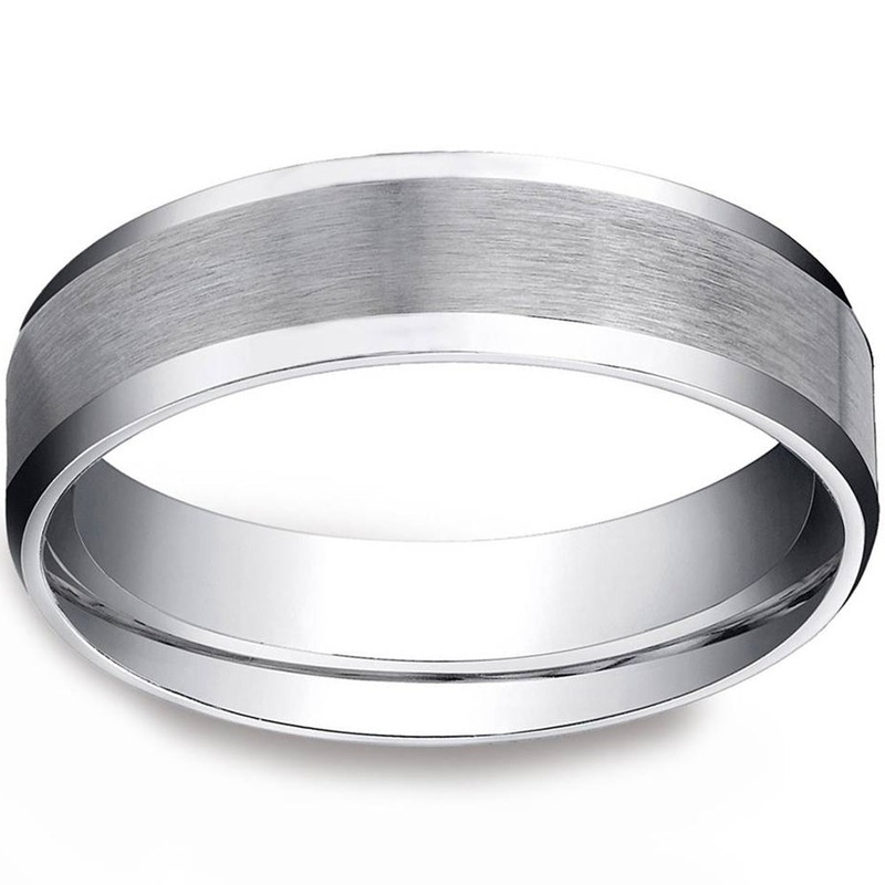 Men’s 10k White Gold 6mm Plain Wedding Band with Satin Center and Beveled Sides 6