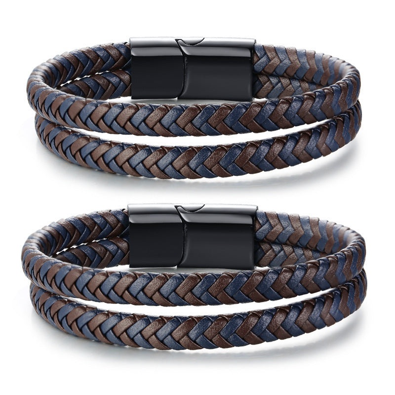 Discover the perfect blend of style and durability with our Stainless steel leather bracelet bracelet, men's black magnet buckle microfiber leather woven stainless steel bracelet for men. This exceptional accessory is designed for the modern man who values