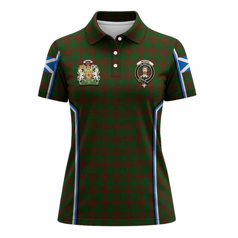 Menzies Tartan Crest Women’s Polo Shirt Scotland Coat of Arm Flag Style