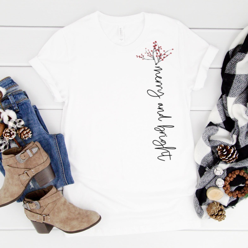 Get in the Holiday Spirit with these Graphic T-shirts!These are also so perfect for Family pictures!Wear this with your favorite jeans, shorts, jean shirt, and baseball cap! Made of super-soft fabric, this boyfriend fit tee is sure to be your favorite tee!