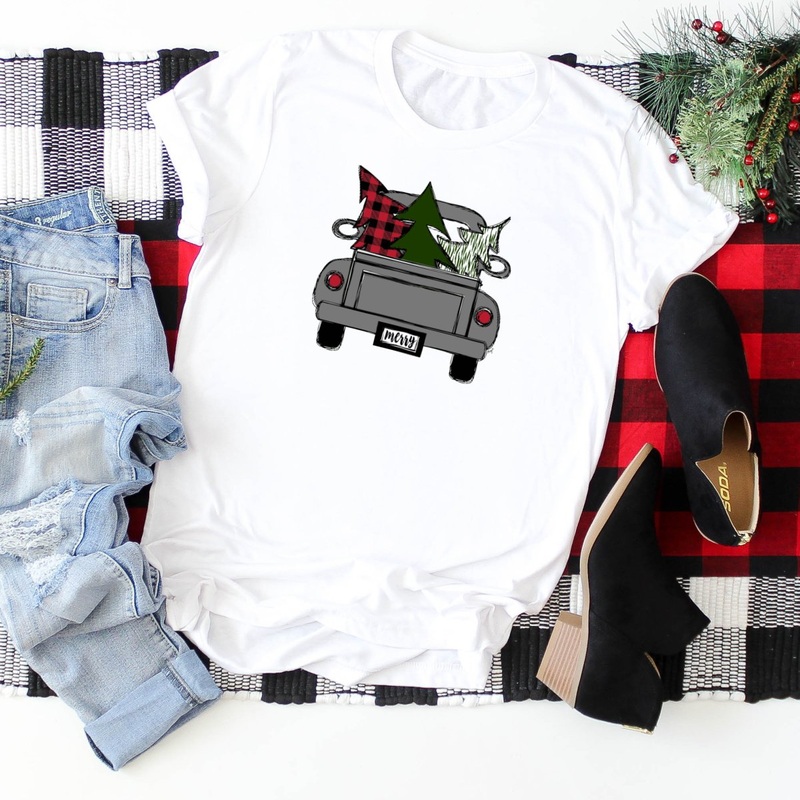 Get in the Holiday Spirit with these Graphic T-shirts!These are also so perfect for Family pictures!Wear this with your favorite jeans, shorts, jean shirt, and baseball cap! Made of super-soft fabric, this boyfriend fit tee is sure to be your favorite tee!