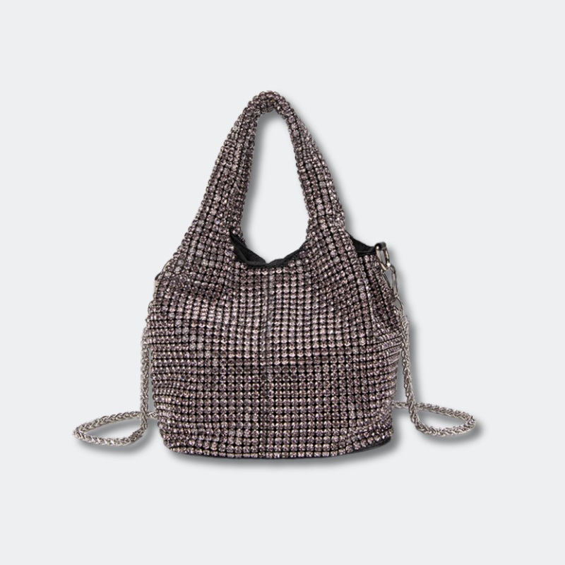 Add a touch of sparkle to your evening with the METROPOLITAN PJ365 Evening Bag. Adorned with rhinestones, this elegant bag doubles as a clutch and tote for your party essentials. The diamond hobo design adds a touch of glamour to any outfit. Perfect for prom or special occasions.