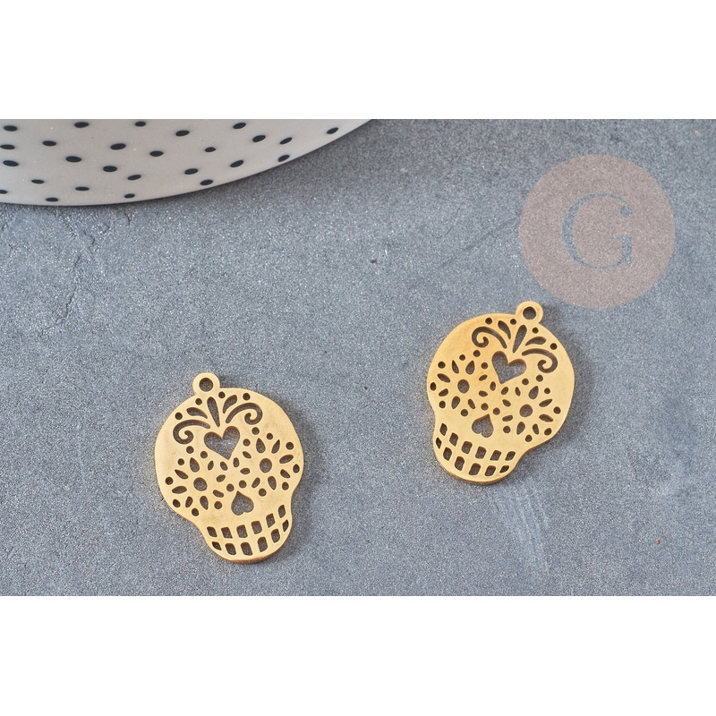 Be the first to review “Mexican skull pendant 201 stainless steel gold 22mm, gold stainless steel charm dia de muertos, x1 G4609”