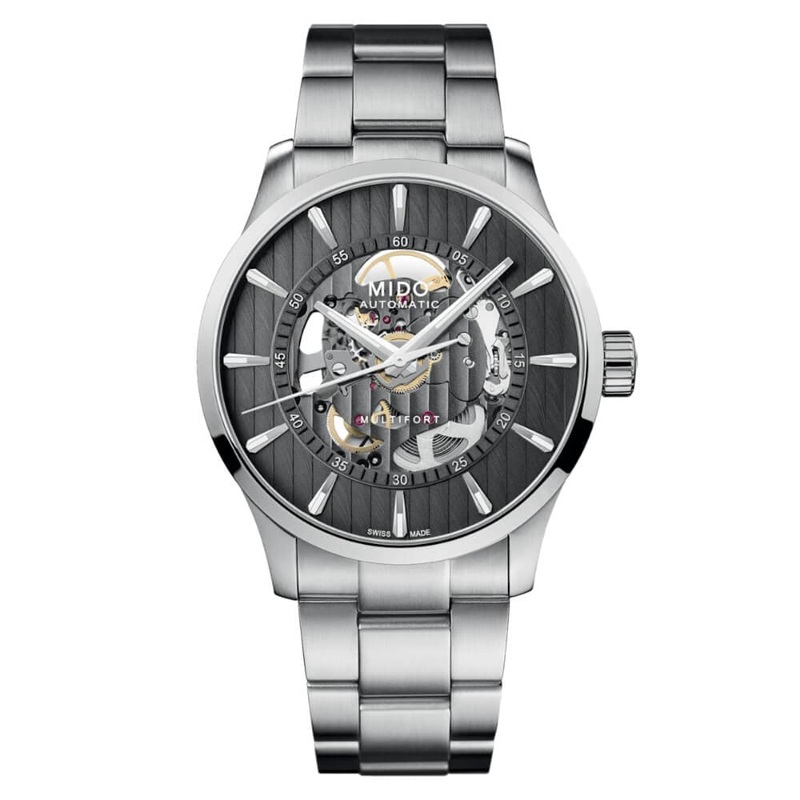 TECHNICAL SPECS DESCRIPTION With its assertive aesthetics and visible mechanism, the Multifort Skeleton Vertigo Swiss Watch takes a bold stance. In a true stylistic and technological achievement, Mido showcases the heart of its automatic movement by reveal