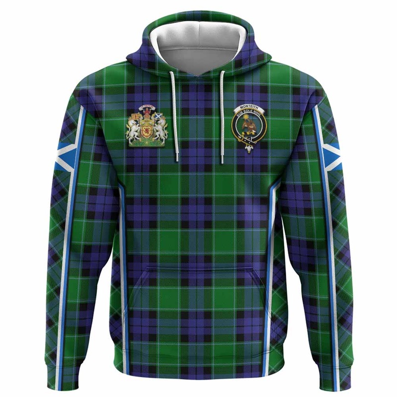 Monteith Tartan Crest Hoodie Scotland Coat of Arm Flag Style