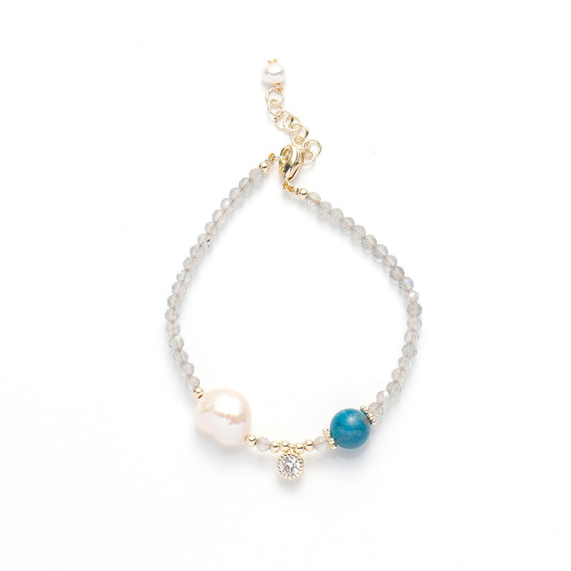Moonstone Labradorite Freshwater Pearl Adjustable Bracelet for Women