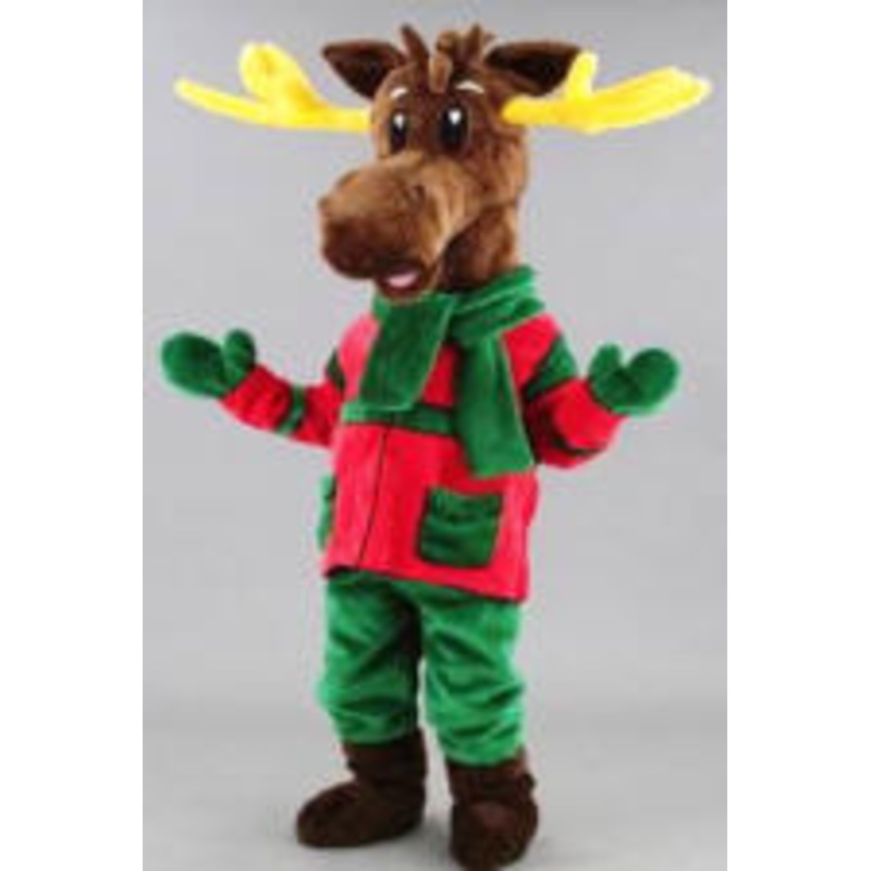 AJ128BInclude: Mascot head, plush body with stomach padding, gloves, and shoe covers.Color: As ShownDressed in this picture for the Christmas holiday. The clothes may be changed to suit your requirements.Size: One Size (up to 48" chest)