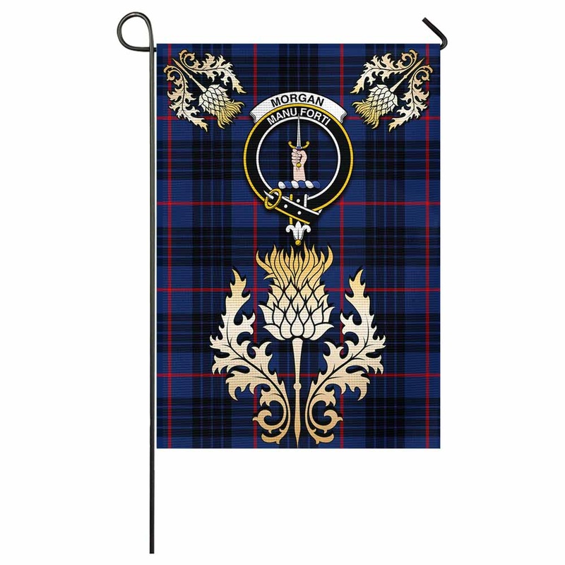 Morgan Tartan Garden Flag with Golden Regal Scottish Thistle EmblemEmbrace your Scottish heritage with the Garden Flag a vibrant emblem of culture, tradition, and pride. Designed for those who cherish their ancestry, this flag speaks to everyone who feels