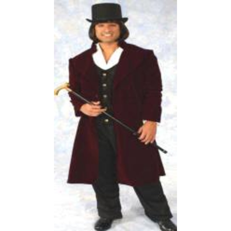 Bring out your inner child as chocolate factory owner or share the dulcet tones of your melodious voice Caroling during the holidays.Includes: Velvet frock coat, panne velvet vest,heavy ponte' black knit pants w/elastic waist &ruffled jabot.Color: Black, B