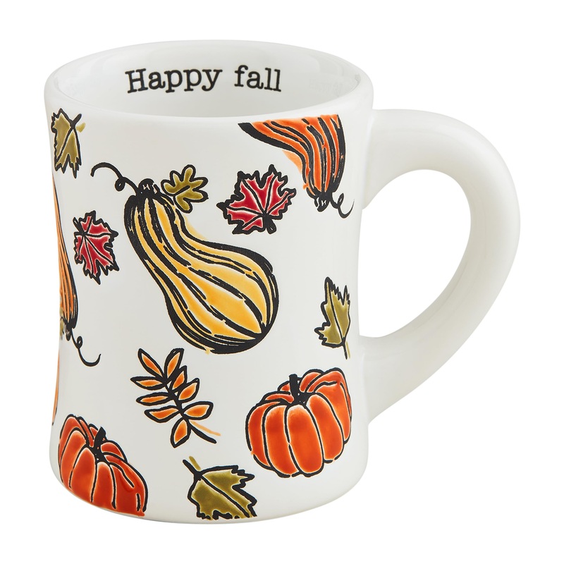 Mud Pie Thanksgiving Pattern Mug, Happy, 14 oz