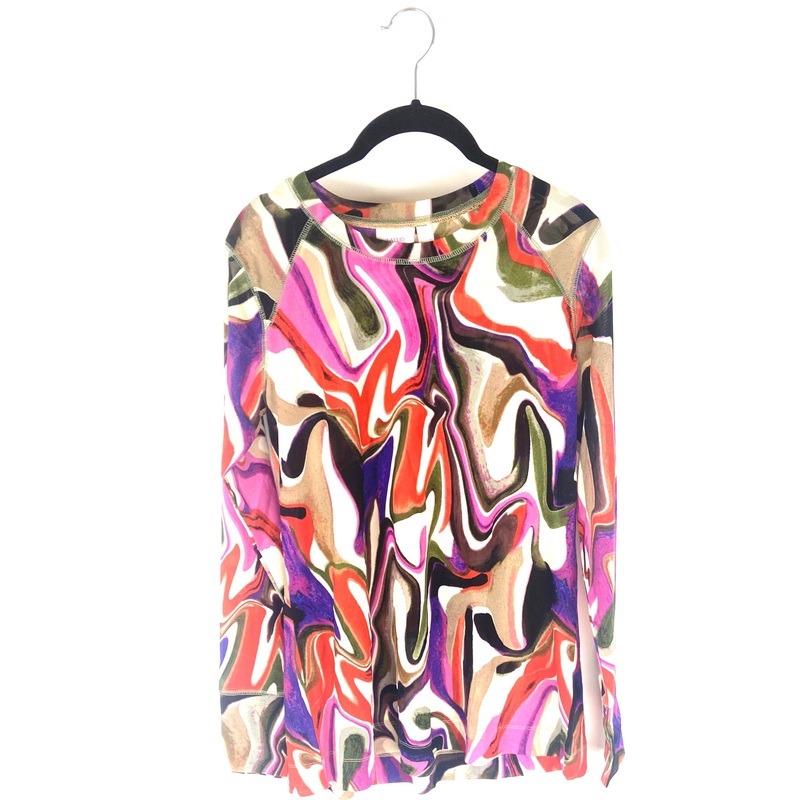 Brand New- donated from the designerLogo Layers mesh tie dye top with green, red, purple, and beige detailing.Size Small (Logo runs big and a size small is a 6-8 according to their size chart)Estimated original price: $60.00*This is a sample piece donated