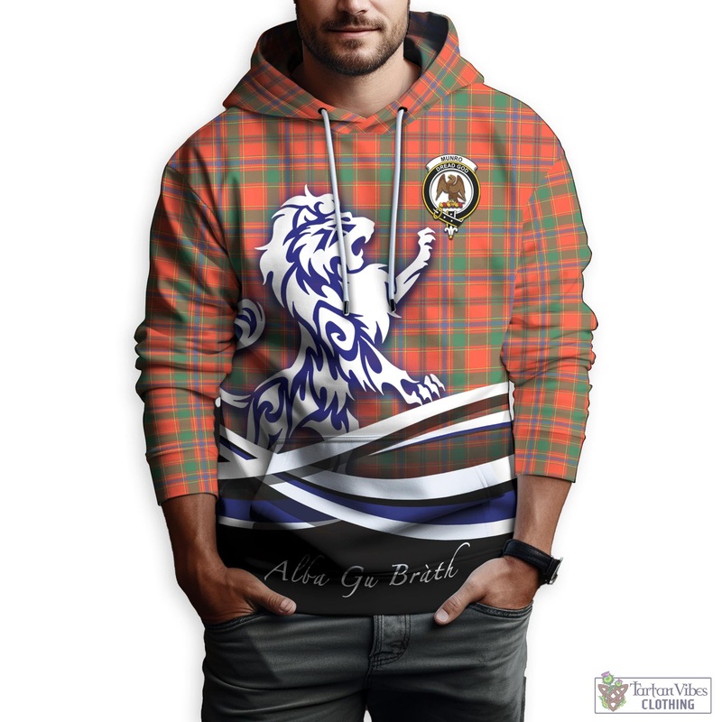 Munro Ancient Tartan Hoodie with Alba Gu Brath Regal Lion Emblem