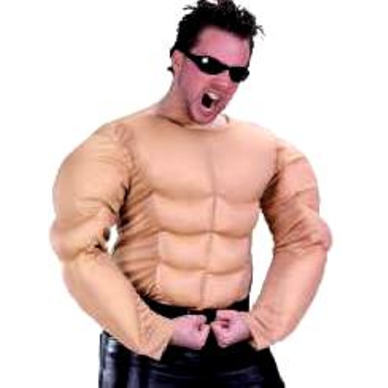 Includes: Foam Filled Padded Flesh color Muscle Shirt with self-stick closure back.Size: One Size fits up to 6' tall & 200 lbs.Good for "PT Barnum" andGaston from "Beauty and the Beast"