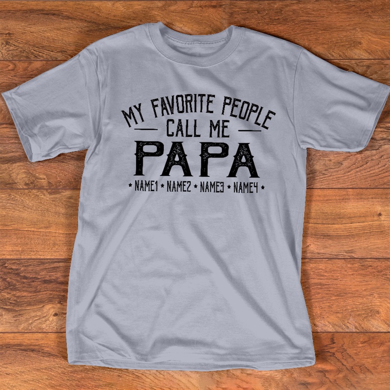 My Favorite People Call Me Papa GrandkidsGreat as Birthday gifts or Holiday presents. This adorable item can be designed upon anyone's wish with any title.Please enter:1. Nickname. ie. Papa, Grandpa, Poppop, ...etc.2. Kids' Names wanted on the shirt (Names