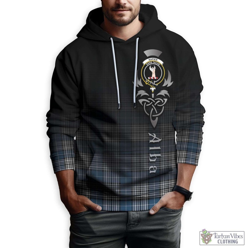 Napier Modern Tartan Hoodie Featuring Alba Gu Brath Family Crest Celtic Inspired