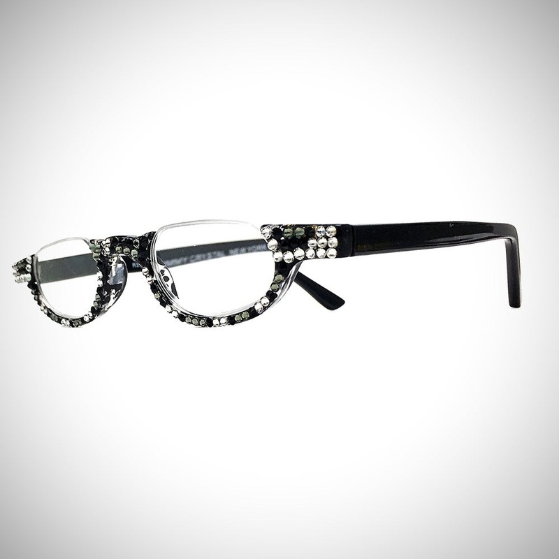 Embellished with crystals, which are set by Jimmy Crystal's expert craftsmanship. This product provides unparalleled aesthetics to transcend elegance. Embellished with crystals Eye/Bridge/Temple: 37/22/140 mm Includes both a case and a pouch