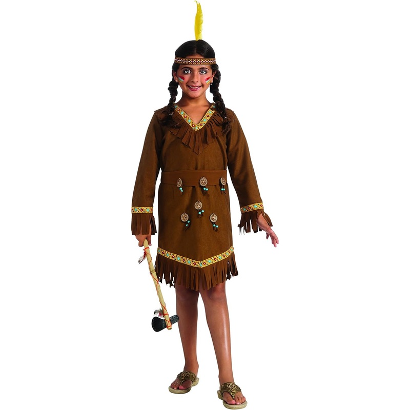 Rubie's Drama Queens Native American Girl CostumeDrama Queens ative american girl costumeFeatures brown dress with fringeMatching headpiece and belt included, toy weapon sold separatelyChild's size Large fits most 8 to 10 year old olds, 56" to 60" tall wit