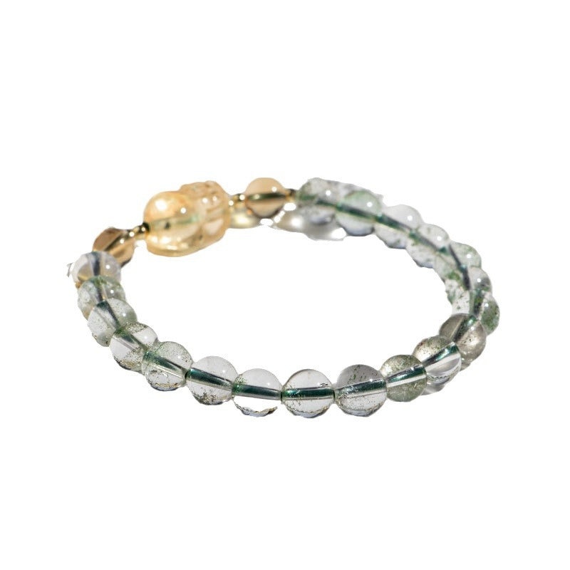 Natural Green Ghost Bead Bracelet with Yellow Crystal Pixiu