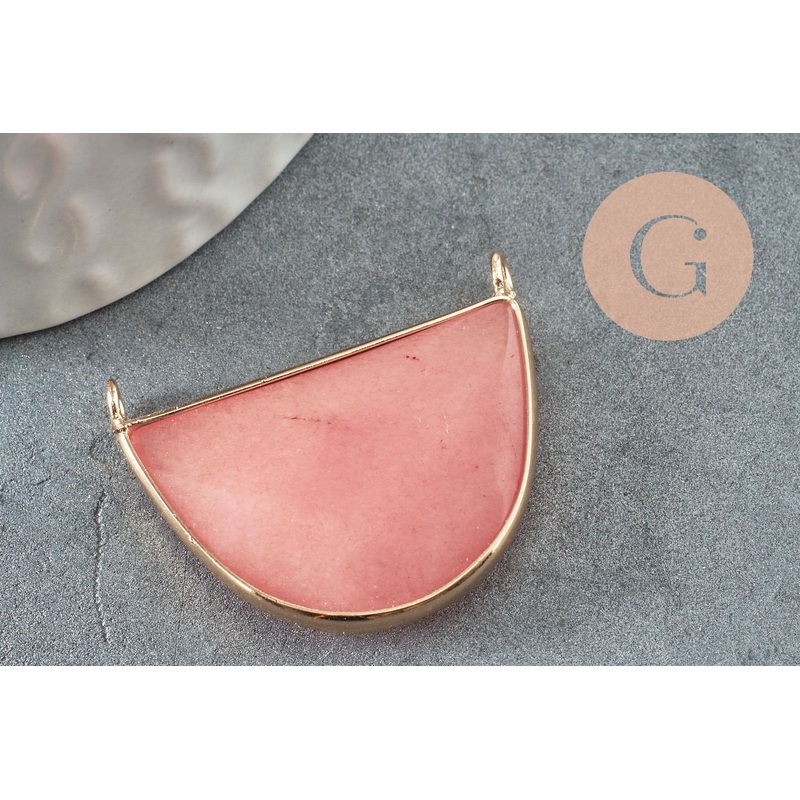 Natural jade half-moon pendant tinted pink gold-plated brass 32mm, natural stone jewelry creation, x1 G1535