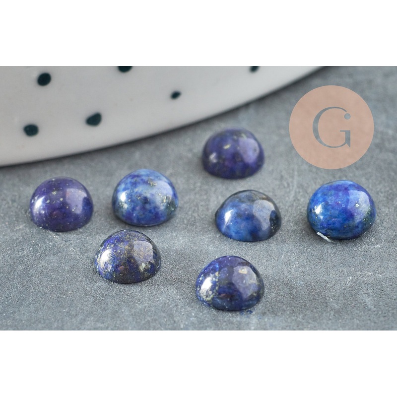 Enhance your creations with this round cabochon in natural Lapis Lazuli . Its magnificent deep blue hue dotted with golden nuances makes it an ideal element for elegant and refined jewelry. To be glued to a suitable support Diameter: 6mm Thickness: 3-4mm O