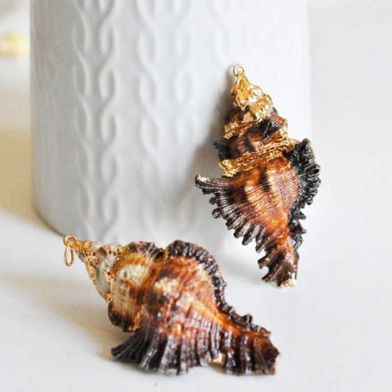 Natural shell pendant Golden Conch, creative supply, golden pendant, jewelry creation, jewel shell, gold shell, 40-65mm