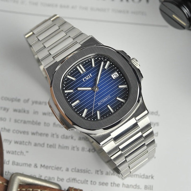 About This ProductNautical Series Custom Dress AutomaticIntroducing our new custom watch, a timeless blend of elegance and modern functionality inspired by the classic Nautilus design. Crafted with meticulous attention to detail, this masterpiece is availa