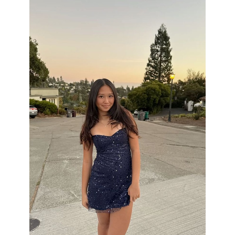 Be the first to review “Navy Blue Spaghetti Straps Short Shinny Party Dress Homecoming Dress J7505”