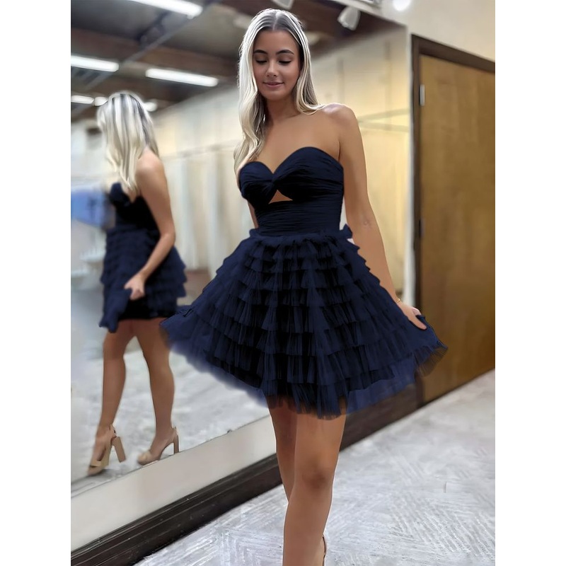 Navy Blue Strapless A-Line Ruffles Short Homecoming Dress J7527
