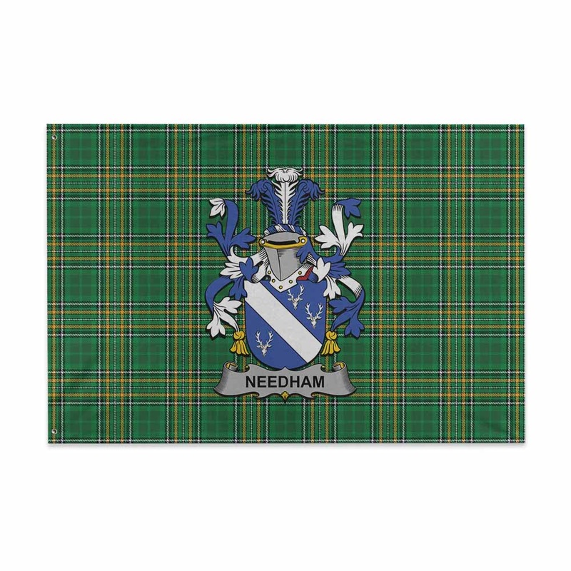 Needham Irish Clan Tartan House Flag with Coat of Arms