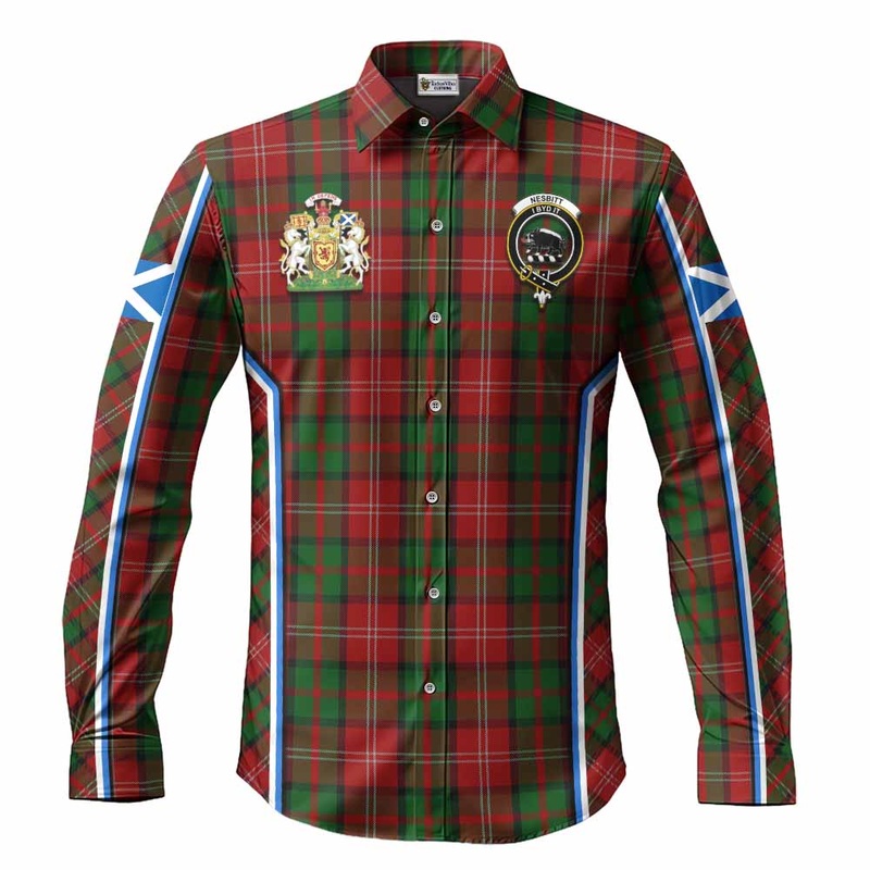 Nesbitt (Nisbet) Tartan Crest Long Sleeve Button Shirts Scotland Coat of Arm Flag Style