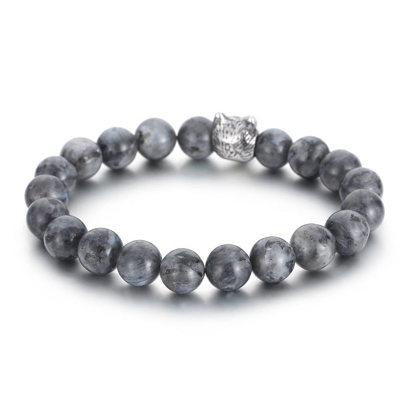 New foreign trade turquoise combination bracelet, personalized matte black agate wolf head stainless steel trendy men’s beaded bracelet for men