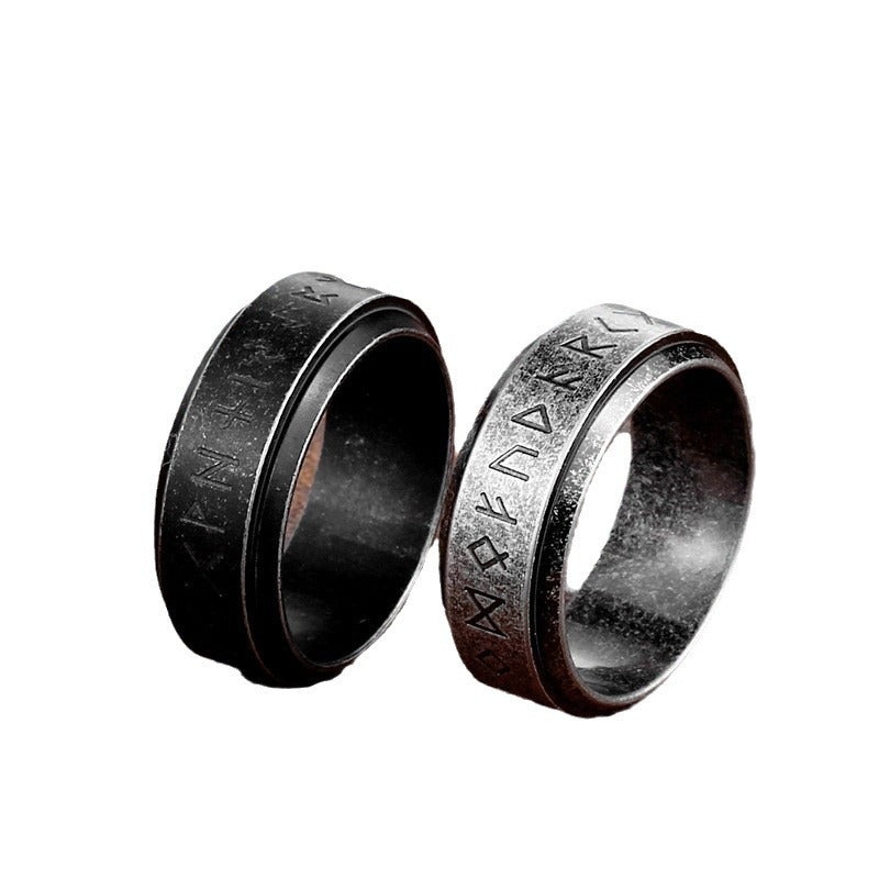 Nordic-Inspired Titanium Steel Viking Letter Ring for Men Wholesale Cross-Border Foreign Trade