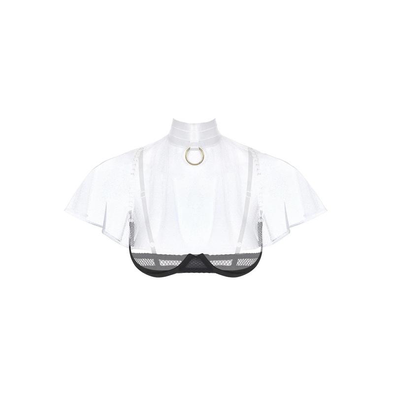 Nun - the woman who devoted her life to worship. Clean, unsophisticated, virginally naive, mysterious, the dream whether a good or a bad boy. Materials: black mesh, white mesh, white rubber, black rubber, gold fittings, and chains.The set includes: underwi