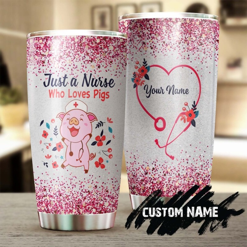 Nurse Love Pigs Pink Glitter Personalized Nurse Tumbler-Funny Nurse Tumbler-Appreciation Nurse Gift-Nurse Thank You Gift-Gift for Nurse