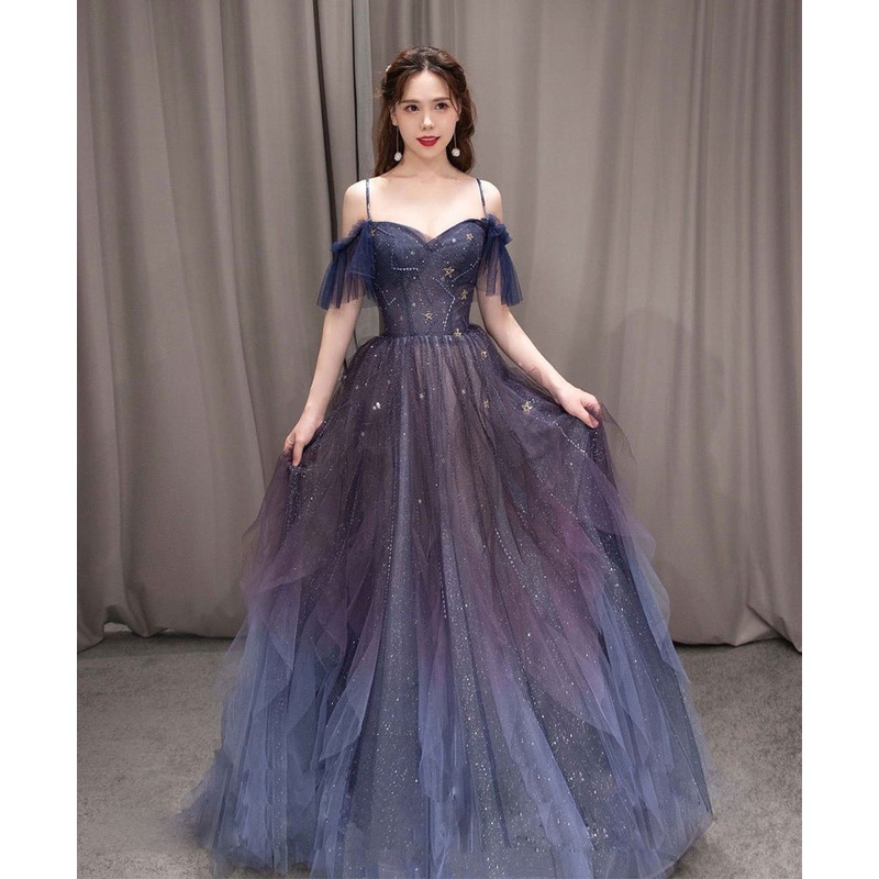 Off Shoulder Star Moon Sequins Long Prom Dress Gradient Evening Tulle Prom Dress 18