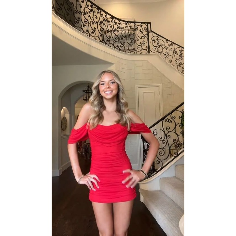 Off the Shoulder Red Ruched Sheath Short Dress J7224