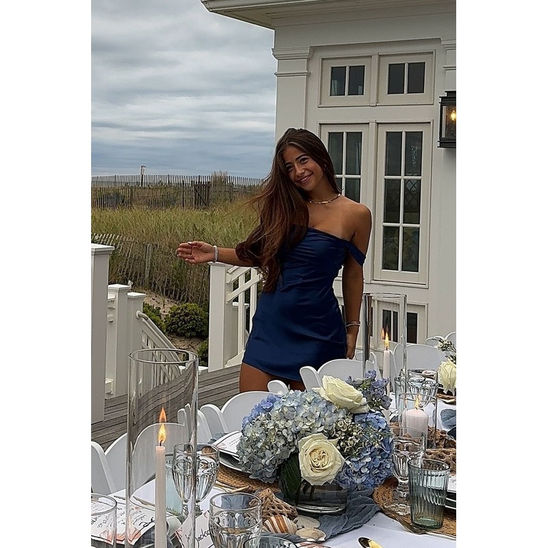 Off The Shoulder Watermelon Satin Short Dress J7532