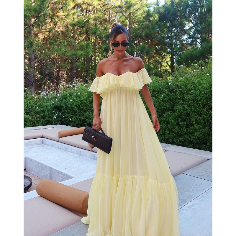 Off The Shoulder Yellow Wedding Guest Dress Formal Party Dress J6936