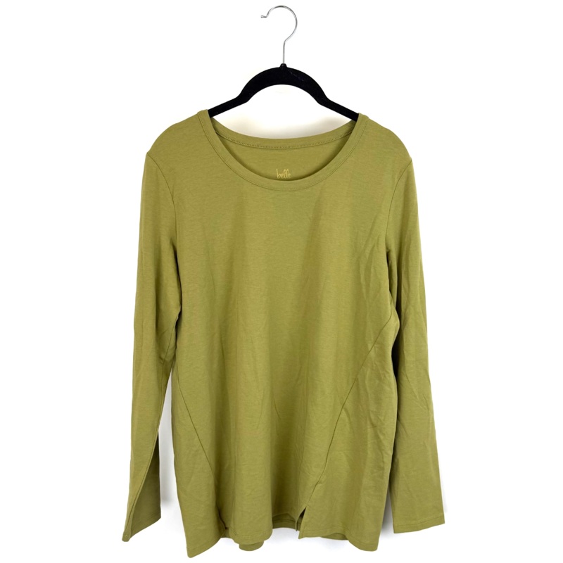 Brand New - Donated from the designerBelle by Kim Gravel olive green long sleeve top with round neck in a soft and stretchy fabricSmall (size 6/8)Fabric Content: 58% Egyptian Cotton 37% Modal 5%SpandexEstimated Original Retail Price: $50.00*This is a sampl