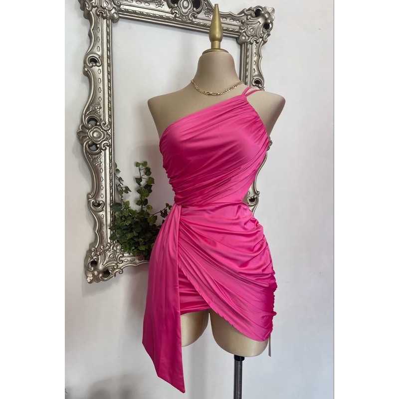 One Shoulder Pink Short Birthday Dress Homecoming Graduation Dress J6706