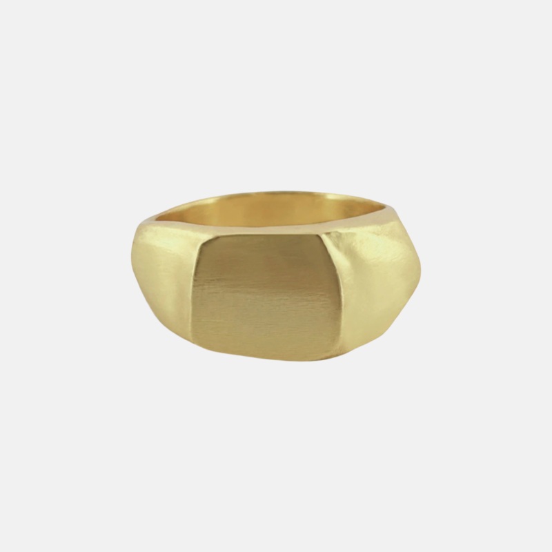 Hand-scraped details create a free-flowing, organic shape, making thisa truly unique take on the classic signet ring.18kt yellow goldHandmadeInterested in customizing your metal or size? [email protected] learn more!