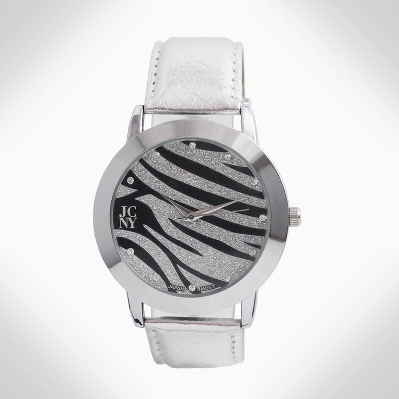 Embellished with crystals on the dial, which are set by Jimmy Crystal's expert craftsmanship. This product provides unparalleled aesthetics to transcend elegance. JCNY logo at 9 o'clock position Stainless steel case back Man made leather belt Miyota Japane