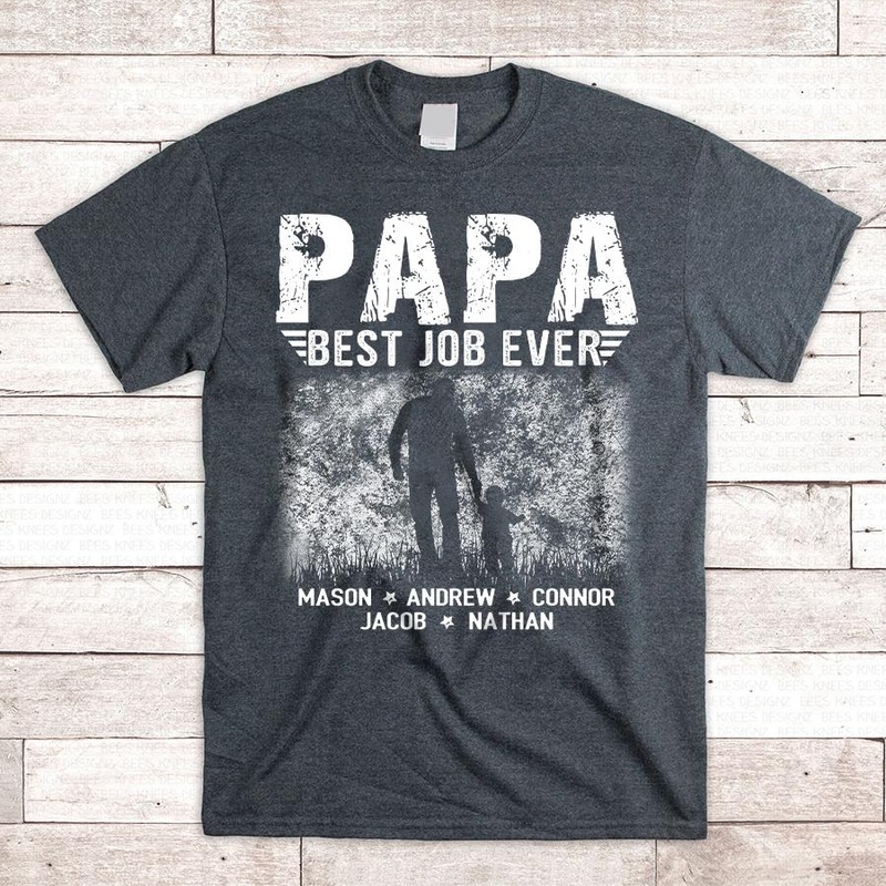 Papa Best Job Ever ||| T-ShirtGreat as Birthday gifts or Holiday presents. This adorable item can be designed upon anyone's wish with any title.Details Brand: Gildan Classic unisex cut makes this easy to fit the body.Material: Heavyweight fabric- Sport Gre